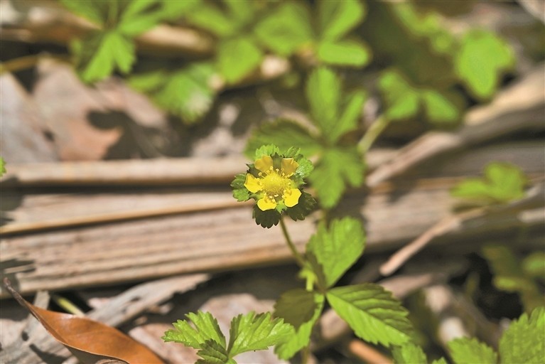 r提到蛇莓,许多人首先想到的是它那鲜红的果实。蛇莓,也被称为蛇泡草,多生长在山坡、河岸、路边等地,花呈金黄色,叶片呈倒卵形或菱状长圆形,花托在果期膨大,海绵质,鲜红色,如同小小的蛇果一般诱人。