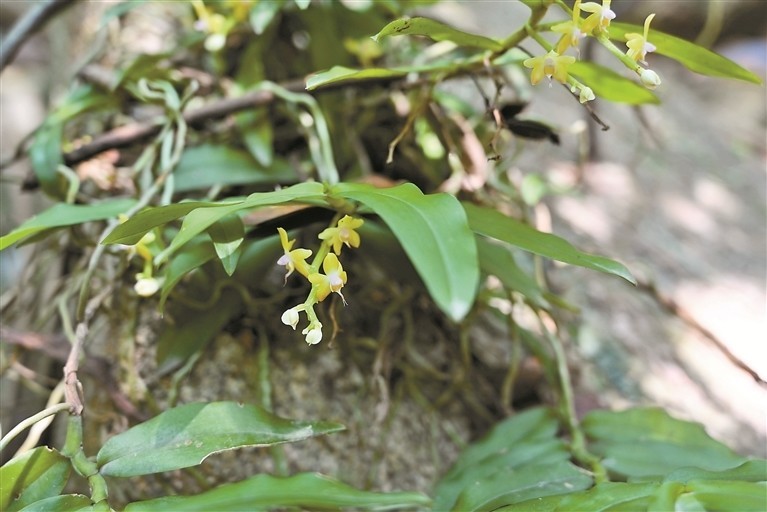 蛇舌兰 夏季开花,摄于马峦山。叶纸质,镰状披针形或斜长圆形,花有香气,开展;萼片和花瓣淡黄色;唇瓣白色带玫瑰色。